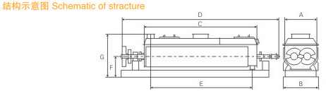 特性参数表 | 型 号 | KJG-2.7 | KJG-9 | KJG-13 | KJG-18 | KJG-24 | KJG-29 | KJG-36 | KJG-41 | 传热面积m2 | 2.7 | 9 | 13 | 18 | 24 | 29 | 36 | 41 | 有效容积m3 | 0.06 | 0.32 | 0.59 | 1.09 | 1.53 | 1.85 | 2.42 | 2.8 | 转速范围r.p.m | 15-30 | 10-25 | 10-25 | 10-20 | 10-20 | 10-20 | 10-20 | 10-20 | 功 率kw | 2.2 | 4.0 | 5.5 | 7.5 | 11 | 11 | 15 | 15 | 器体宽A mm | 306 | 584 | 762 | 940 | 1118 | 1118 | 1296 | 1296 | 总宽B mm | 736 | 841 | 1066 | 1320 | 1474 | 1474 | 1676 | 1676 | 器体长C mm | 1956 | 2820 | 3048 | 3328 | 3454 | 4114 | 4115 | 4724 | 总长D mm | 2972 | 4876 | 5486 | 5918 | 6147 | 6808 | 6960 | 7570 | 进出料距E mm | 1752 | 2540 | 2768 | 3048 | 3150 | 3810 | 3810 | 4420 | 中心高F mm | 380 | 380 | 534 | 610 | 762 | 762 | 915 | 915 | 总高G mm | 762 | 838 | 1092 | 1270 | 1524 | 1524 | 1778 | 1778 | 进汽口N吋 | (2)3/4 | (2)3/4 | (2) 1 | (2) 1 | (2) 1 | (2) 1 | (2) 1 | (2) 1 | 出水口O吋 | (2)3/4 | (2)3/4 | (2) 1 | (2) 1 | (2) 1 | (2) 1 | (2) 1 | (2) 1 |