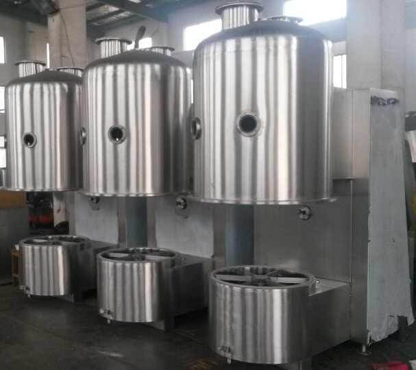 用途 ■ 医药、食品、饲料、化工等领域湿颗粒和粉状物料干燥螺杆挤压颗粒、摇摆颗粒,高速混合制粒颗粒。 ■ 大颗粒、小块状、粘性块粒状物料。 ■ 磨芋、聚丙烯酰胺等干燥时体积变化的物料等。 特点 ■ 流化床为圆形结构避免了死角。 ■ 床内设置搅拌,避免了潮湿物料的团聚及干燥过程中形成沟流。 ■ 置布袋过滤器为抗静电特种纤维,操作安全。 ■ 翻倾卸料,方便迅速彻底。 ■ 密封负压操作,按规范设计。 ■ 本机亦可按要求进行自动进出料设计制作。