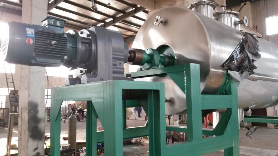 ZB型真空耙式干燥机设备特点 用途 医药、食品、化工等行业进行以下物料干燥 ◆ 适用于浆状、膏糊状、粉状物料。 ◆ 要求低温干燥的热敏性物料。 ◆ 易氧化、易爆、强刺激、剧毒物料。 ◆ 要求回收有机溶剂的物料。 特点 ◆ 本机采用夹层与内搅拌同时加热方式,传热面大,热效率高。 ◆ 本机设置搅拌,使物料在筒内形成连续循环状态,进一步提高了物料受热的均匀度。 本机设置搅拌,从而可顺利进行浆状、膏状、糊状物料干燥。   ZB型真空耙式干燥机技术参数 | 项目 | 机型 | 名称 | 单位 | ZB-500 | ZB-750 | ZB-1000 | ZB-1500 | ZB-2000 | ZB-3000 | ZB-4000 | 工作容积 | L | 300 | 450 | 600 | 900 | 1200 | 1800 | 2400 | 加热面积 | m2 | 3.2 | 4.4 | 5.1 | 6.3 | 8.7 | 10.6 | 12.3 | 搅拌转速 | rpm | 8~18 | 功率 | kw | 4 | 5.5 | 5.5 | 7.5 | 7.5 | 11 | 15 | 夹层设计压力 | MPa | 0.3 | 筒内压力 | MPa | -0.096~0.15 |